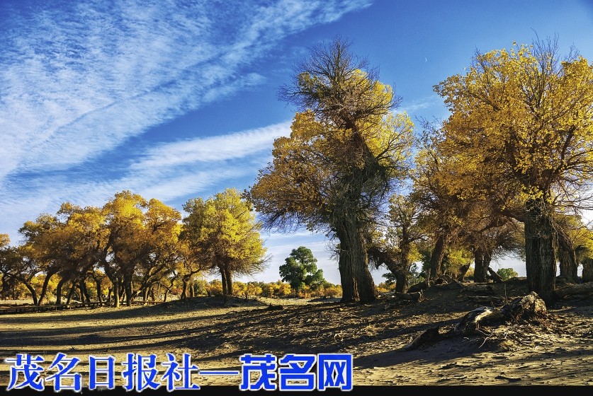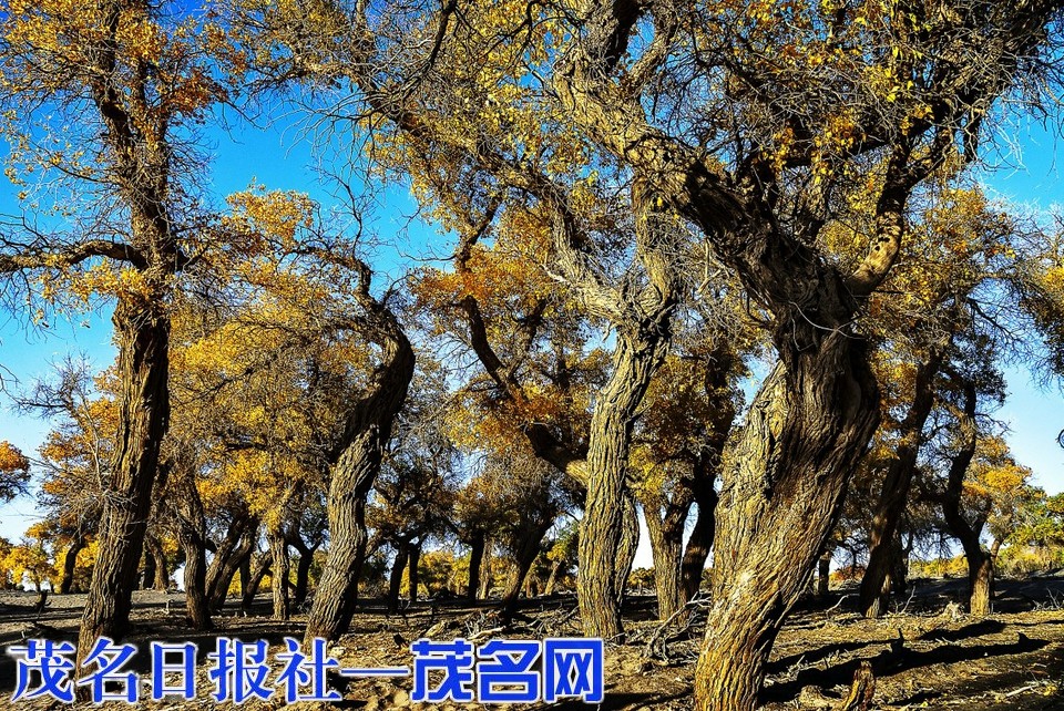 每当深秋季节,胡杨树叶变得一片金黄,形成胡杨秋色,树影婆娑,金韵斑斓,奇妙绝伦,赏心悦目。漫步在浓郁的胡杨林中仿佛进入神话般的仙境。茂密的胡杨千奇百怪,神态万般。粗壮的几人难以合抱,挺拔的七、八丈之高,怪异的似苍龙腾越,虬蟠狂舞,令人惊奇不已,叹为观止。