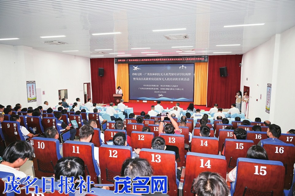 茂名网讯 18日上午,鼎峰无限·广东茂名农林科技职业学院无人机驾驶培训学院揭牌暨茂南区高素质农民植保无人机培训班开班。市人大常委会副主任陈凡晓,广东茂名农林科技职业学院、深圳市鼎峰无限电子有限公司、茂南区委、区政府、茂名市农业农村局、茂名市退役军人事务局、茂名市委教育工委、茂名市教育局、茂南中科云粤西产业园管理中心等单位有关负责人参加揭牌仪式暨开班活动。