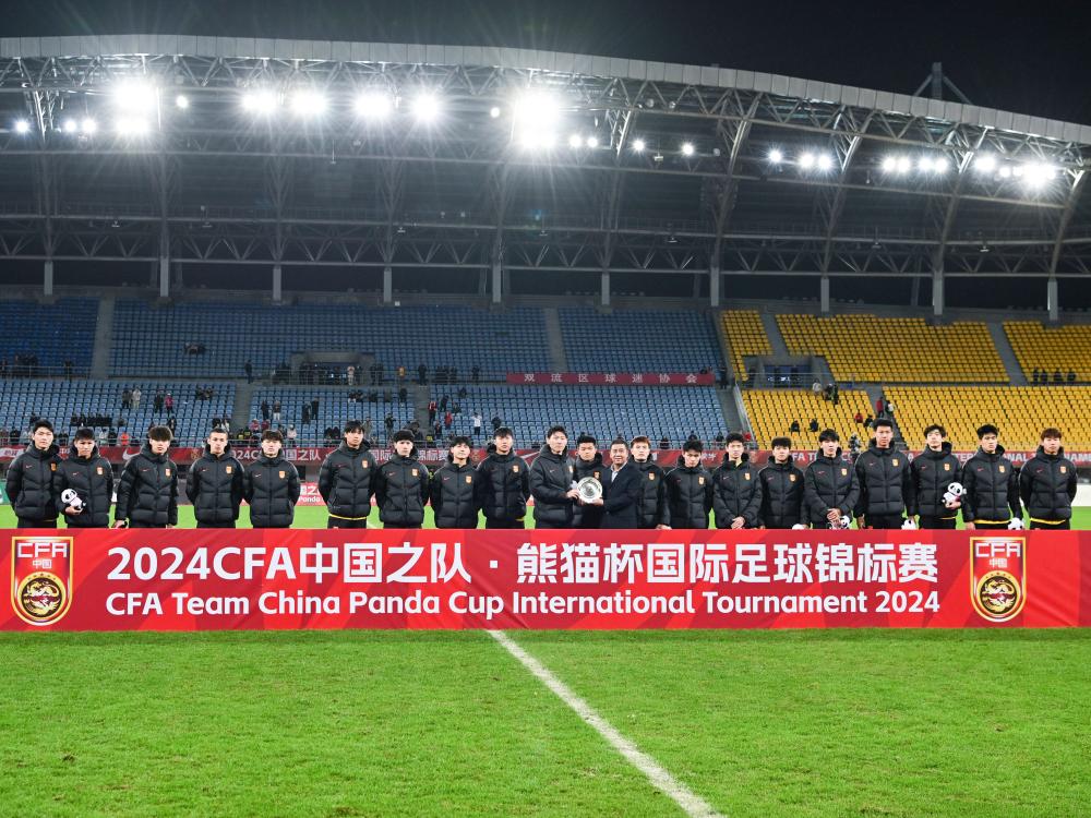 此后中国队大举进攻,对对手形成围攻之势,但始终在临门一脚上稍欠火候。下半场中国队依旧占据主动,但面对对手铜墙铁壁般的防守得势不得分,最终比分未能改写。至此,本次“熊猫杯”落下战幕,中国U19男足3战1胜1平1负,获得第三名。