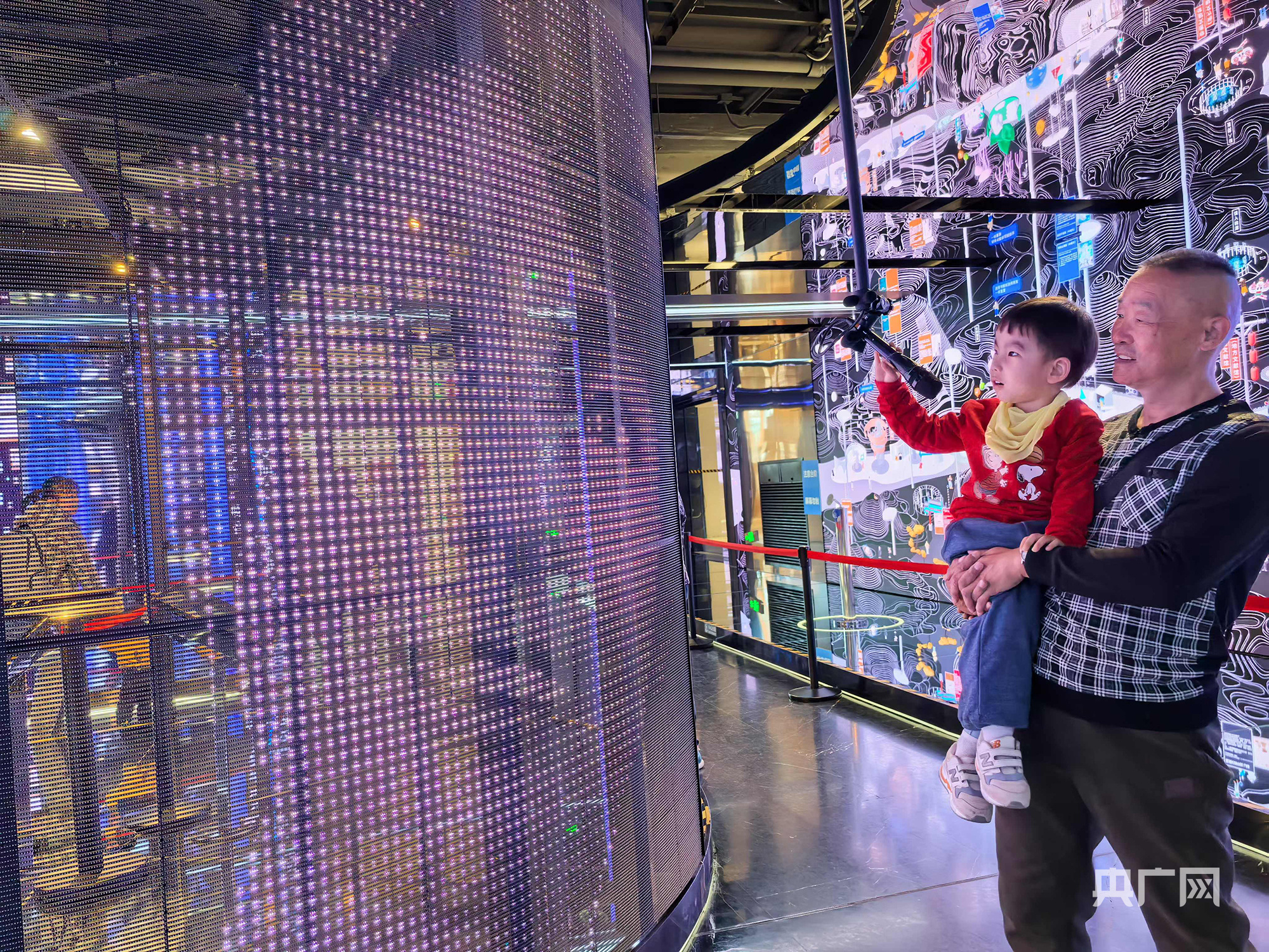 小孩在北京城市图书馆与虚拟数字人互动(央广网记者 阮修星 摄)