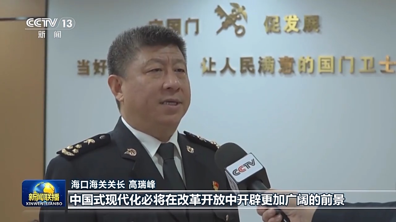 海口海关关长 高瑞峰:习近平主席在新年贺词中指出,中国式现代化必将在改革开放中开辟更加广阔的前景。今年,海南自贸港将实现封关运作。我们要始终沿着习近平总书记指引的方向前进,不断深化海关监管制度集成创新,努力把海南自由贸易港打造成为引领我国新时代对外开放的重要门户。