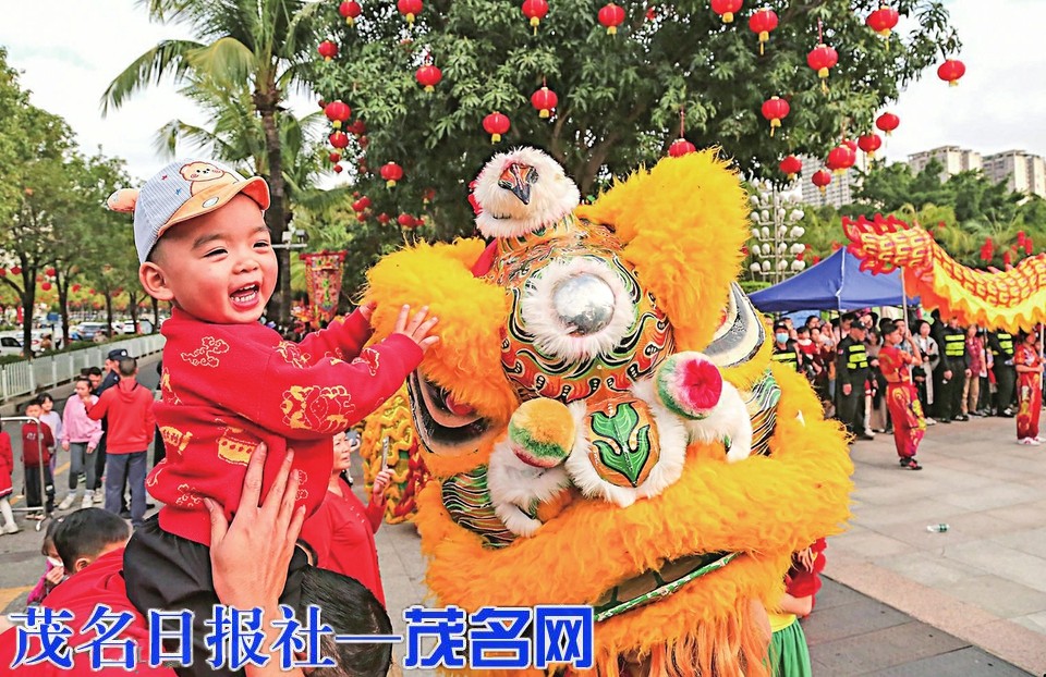 ▲醒狮与小朋友互动。茂名日报社全媒体记者 岑稳 摄