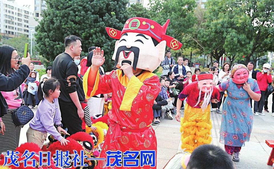 ▲“财神”与市民观众互动。茂名日报社全媒体记者 岑稳 摄