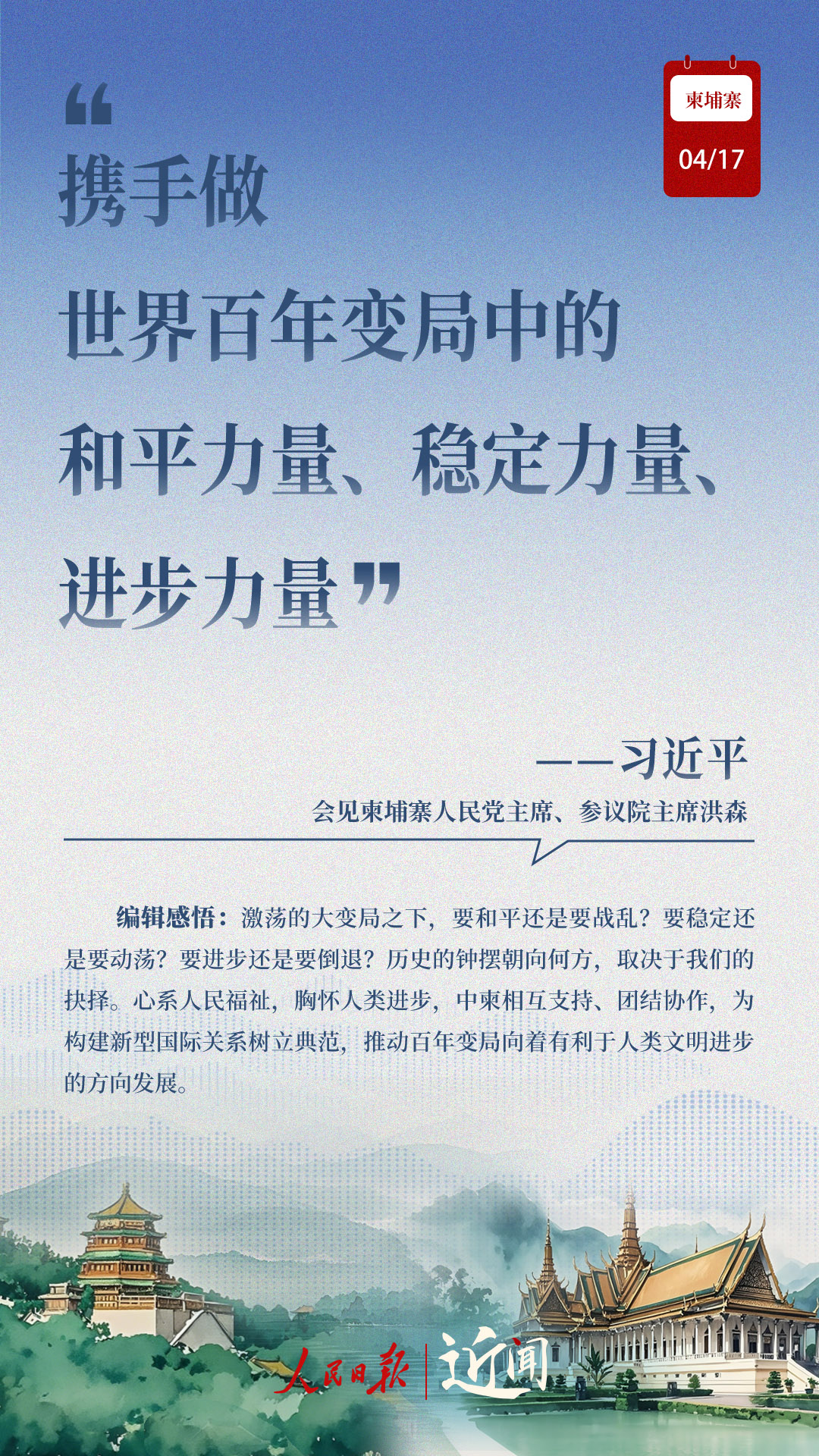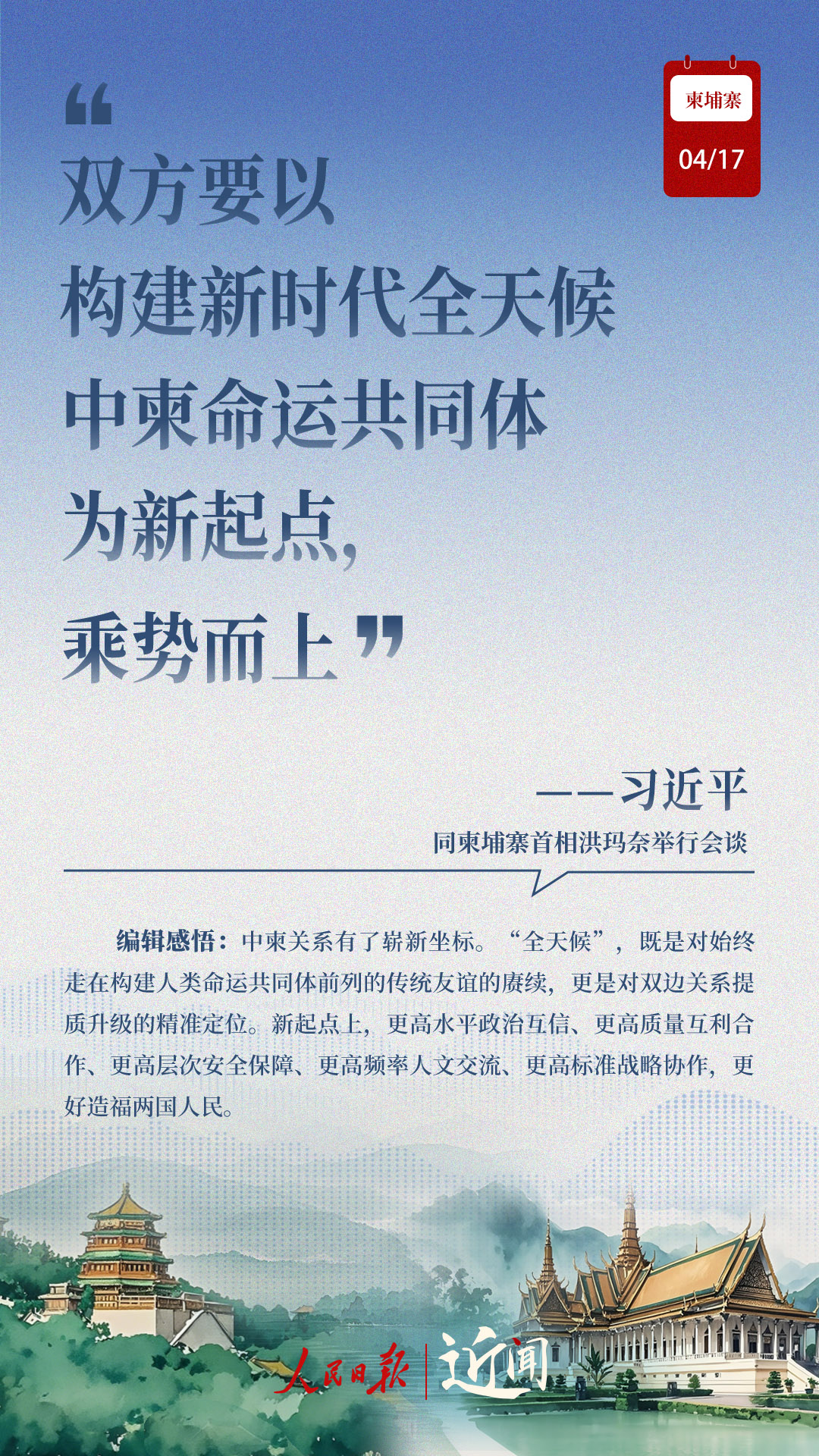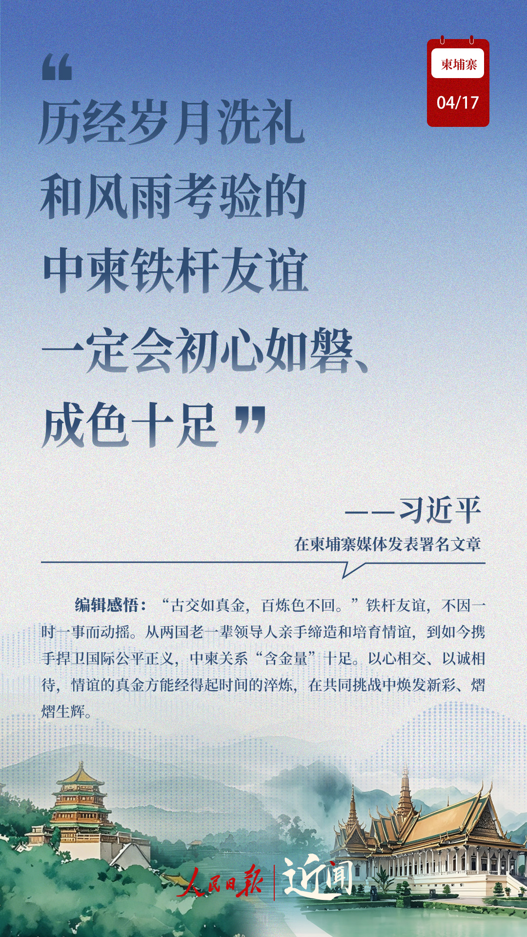 时隔9年,习近平主席再次访问柬埔寨。到好朋友家里做客,一项项高规格礼遇欢迎“柬埔寨最伟大的朋友”。“古交如真金,百炼色不回。”从两国老一辈领导人亲手缔造和培育两国友好,到率先构建双边命运共同体,再到构建新时代全天候中柬命运共同体,中柬关系新定位水到渠成。来源:人民日报 点赞