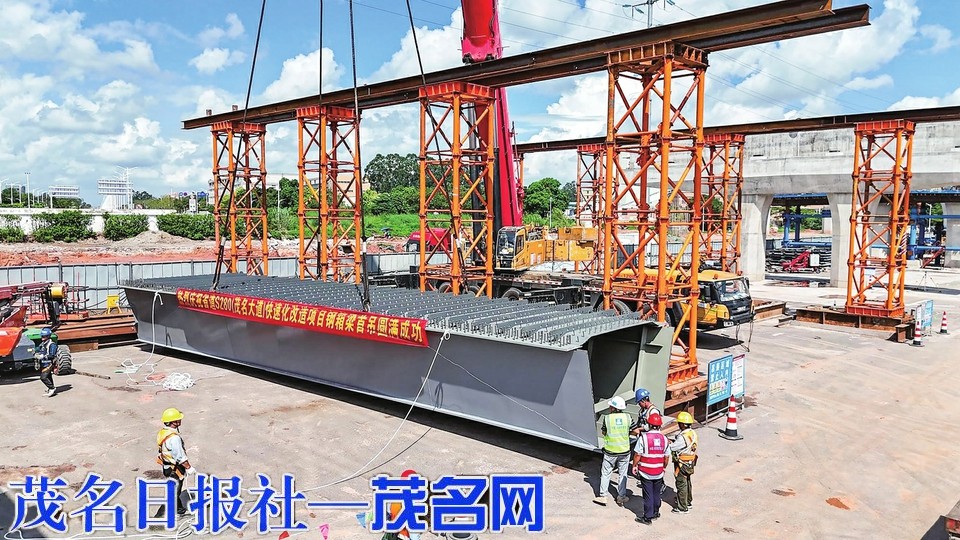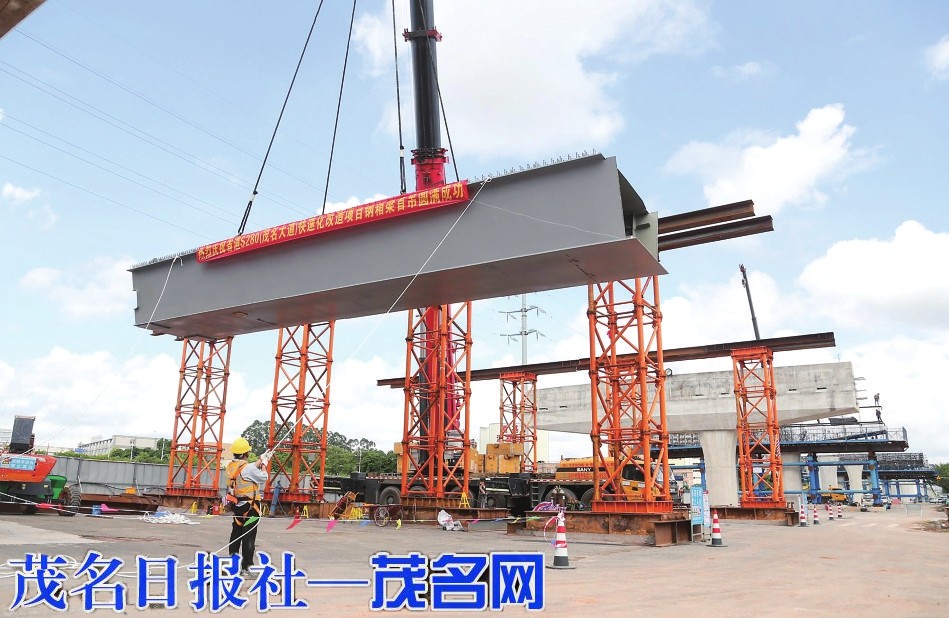茂名网讯 9月2日上午,省道S280线(茂名大道)快速化改造(一期)钢箱梁首吊成功,标志着该项目打通了关键线路——箱梁架设运梁通道的断点、卡点,施工建设步入新阶段,为后续全力冲刺主线预制梁架设及桥面系施工打下坚实的基础。