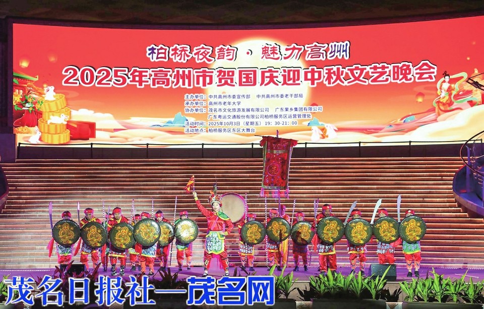 茂名网讯 国庆中秋双节期间,作为茂名“百千万工程”典型样板的柏桥星光璀璨。10月1日、3日,“柏桥夜韵·魅力化州”“柏桥夜韵·魅力高州”两场专场文艺晚会相继在柏桥服务区东区大舞台上演,以非遗传承为脉,以家国情怀为魂,在迷人夜色中铺展两地高质量发展的生动图景。