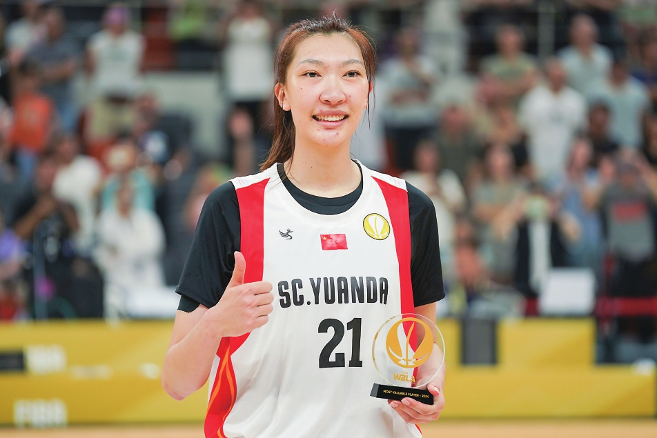 2024 年 9月28日,时为四川远达美乐队球员的韩旭获颁首届国际篮联亚洲女子篮球联赛“最有价值球员”奖。新华社记者 胥冰洁 摄