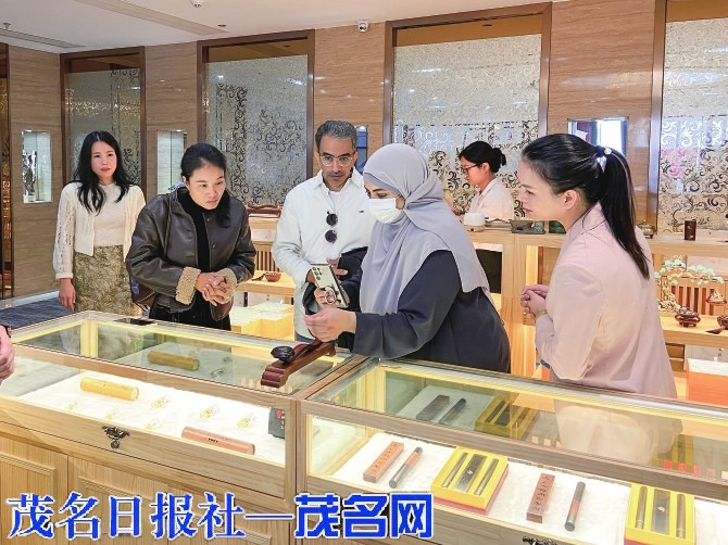 在茂名冼府沉香供应链管理有限公司的沉香选品中心,该中心负责人戴明向客商详细讲解了电白沉香的历史底蕴与工艺特色。“电白作为‘中国沉香之乡’,拥有完整的种植、加工与品鉴体系。我们的产品融合岭南传统技艺与现代设计,已通过‘广州礼物’等平台走向大湾区,此次对接中东市场更是文化与贸易的双重突破。目前公司正通过文化IP开发、溯源技术应用,提升沉香的国际认可度。”戴明指出,未来将联合中东企业共塑品牌故事,推动沉香产品融入中东高端礼品市场。