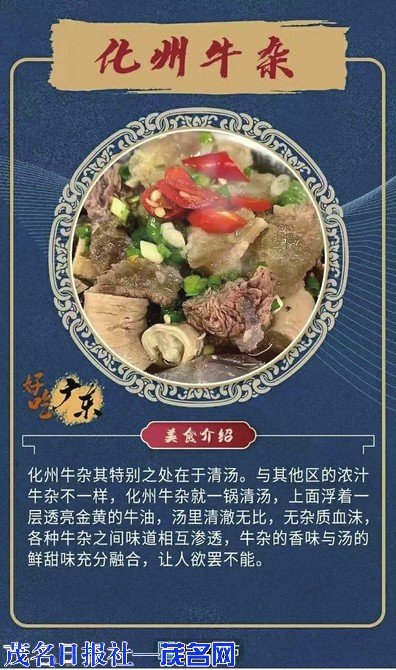 化州牛杂2021年入选我市第六批市级非物质文化遗产代表性项目,不仅成为我市的美食名片之一,还形成了一个产业群,创造大量的就业创业机会。秋风起,来一碗热气腾腾、鲜嫩弹牙的牛杂吧!