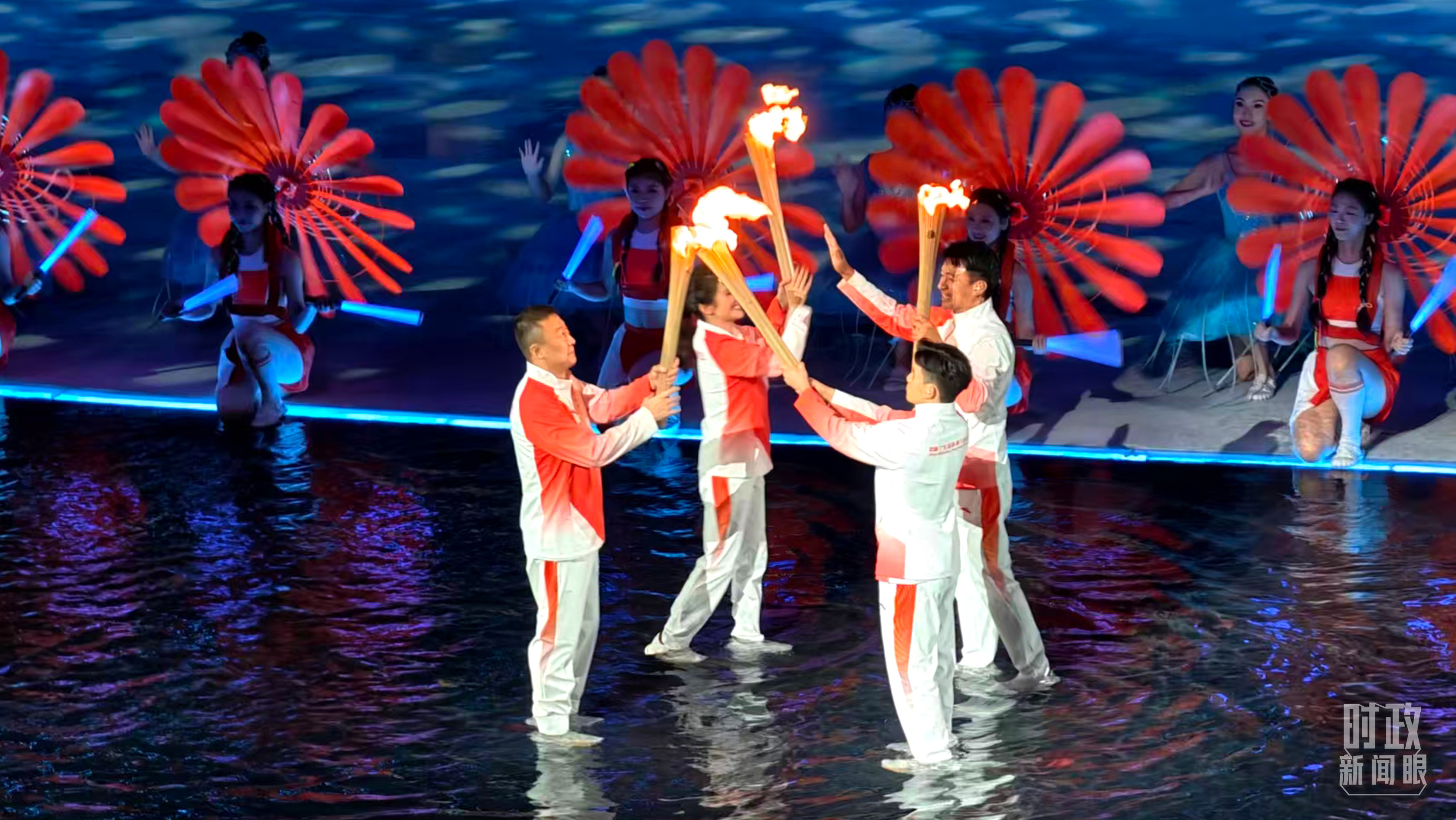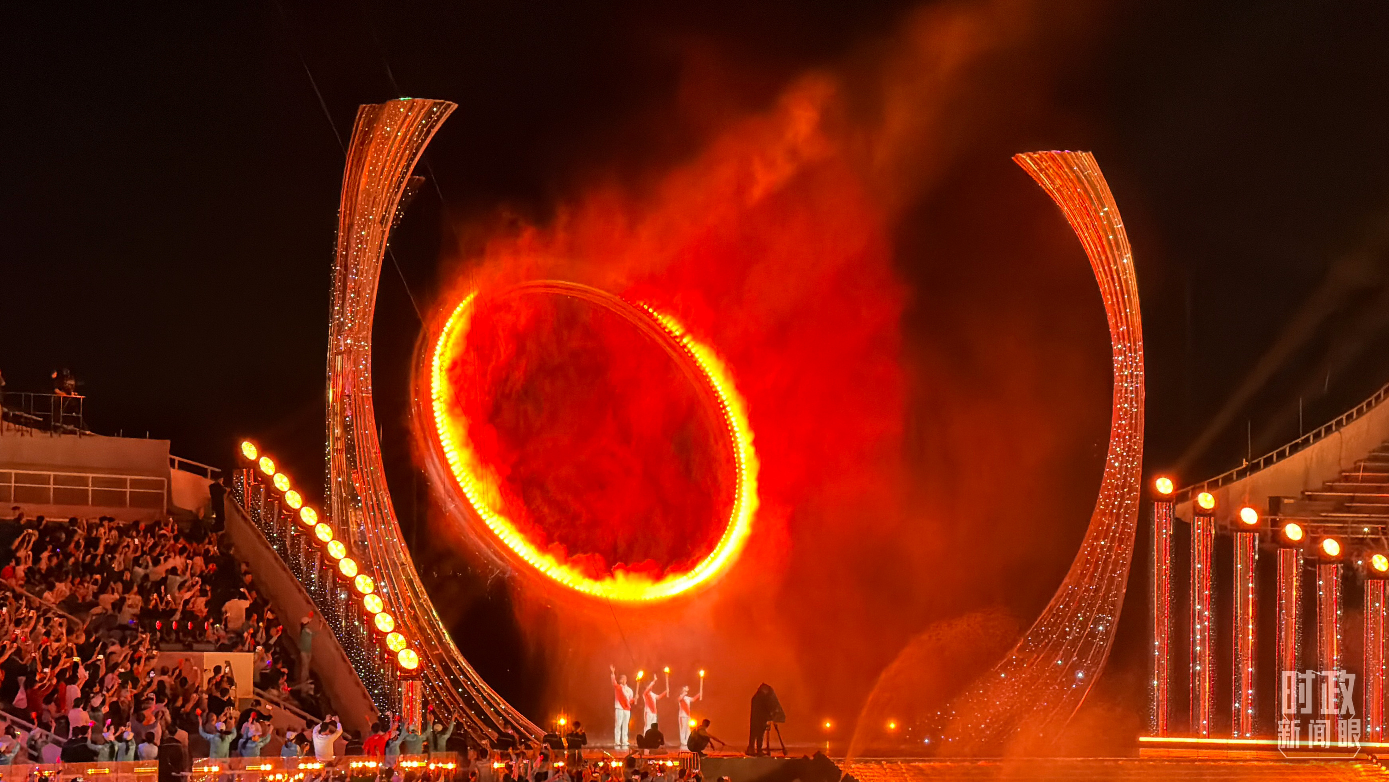 △第十五届全运会主火炬点燃环节。(总台央视记者范一鸣、蒋硕 拍摄)