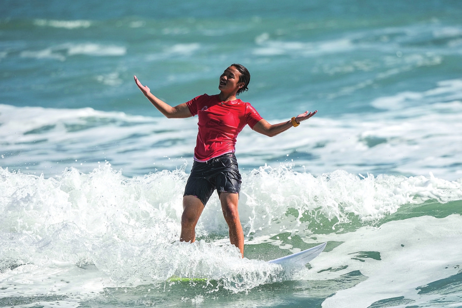 16岁的杨思琪目前的动作高度、转体稳定性均属国内女子选手顶级,决赛中她也不负众望,第一道浪便凭借极高的难度和完成度得到8.67分,惊艳全场,最终以总分14分、领先亚军5.33分的巨大优势轻松摘得自己首个全运冠军。这位从四川凉山走出的“浪尖玫瑰”,以全运赛场统治级的表现,展现了中国选手在冲浪项目上的快速成长。