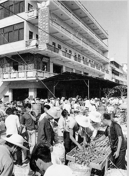上个世纪80至90年代,化州县的北运菜享誉全国,“全国南菜北运经验交流会”就在化州召开。同庆公社农民柯华土率先牵头组织了“同庆果菜北运公司”,发动农民大量种植北运菜,公司负责收购北运,掘得了“第一桶金”,全县农民纷纷效仿学习。至1988年,全县南菜北运公司已达248家,收购网点1680个。北运菜销往华中、华北地区。据统计,1988年全县种植北运菜达11.07万亩,总产量1.25万公斤,总产值达1.15亿元。那时的化州冬野,到处是北运菜,绿油油的一片,生机勃勃,正是“四海无闲田,处处椒和菜”。每逢墟日,椒农们用单车载着一车车的北运菜,欢天喜地赶赴收购站。收购站里里外外,人山人海,好不热闹!图为当年化州县同庆墟北运菜收购站场景。