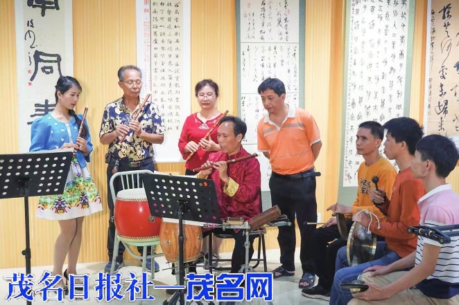 但林继衡没有放弃,除了开班传授技艺,他还准备组建一个女子“八音班”。他在日常教学培训时观察到,刚退休50岁左右,有退休工资,有时间且热爱音乐的女士很适合八音锣鼓表演。他最近已经物色到几位非常有潜力的学员,“其中有两位,一位遂溪人,一位信宜人,她们从零开始学习洞箫,很勤奋,才几个月就已经能吹奏比较复杂的曲子,而且对八音锣鼓文化非常感兴趣。”