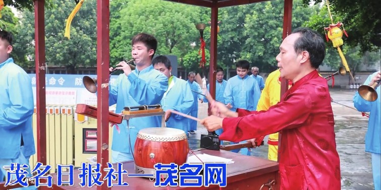 林继衡一边爱惜地整理这些“老伙计”,一边介绍:“八音锣鼓是指由金、石、土、木、革、丝、竹和匏八种材料制作出的民族乐器及锣鼓,不是八种乐器的意思。”高州八音锣鼓充满岭南特色,常以锣鼓亭的形式出现。锣鼓亭像一个乐器“百宝箱”,可以根据不同场合和曲目来选择不同的乐器,极具包容性和可塑性。