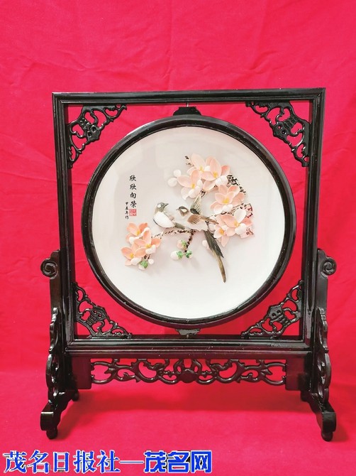 “读小学时,我去霞洞的表兄家玩,看到他的书法与绘画,就对艺术产生了浓厚的兴趣。”莫善玉回忆道。“我有个堂哥在电白县二轻工艺美术厂里担任美术设计师,我就常去厂里跟堂哥观看学习,当时的贝壳小摆件非常受年轻人的青睐,而我对贝雕的喜爱也越发地执着,下定决心要在贝雕行业做出一番成绩来。”