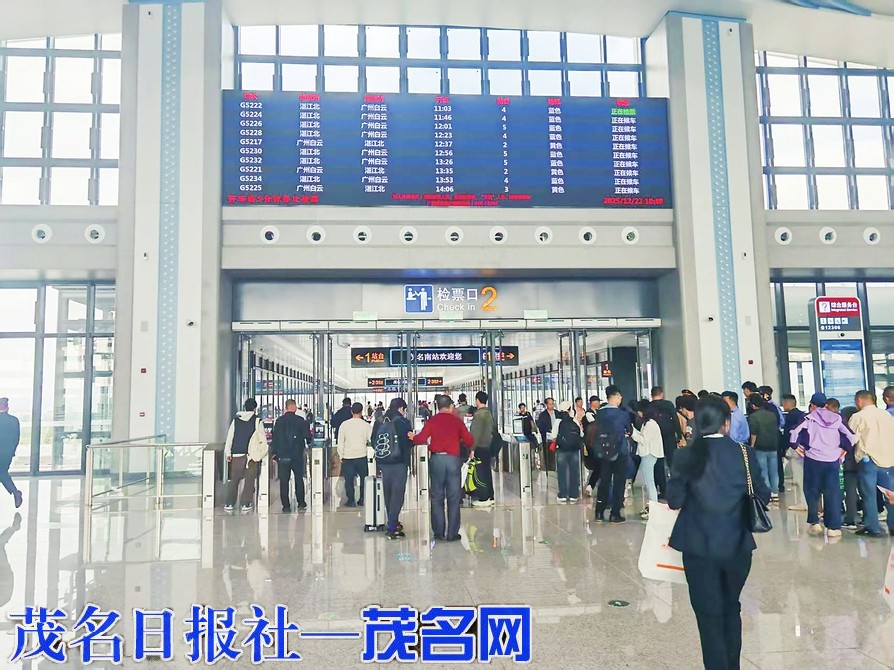 在运营车次与时间上,广湛高铁正式开通后,每日有多趟列车经停茂名南站。其中,开往广州白云站方向的列车共计30列,首班车约7:16发车,末班车约20:51发车;开往湛江北站方向的列车共计29列,首班车约9: 07发车,末班车约22:50发车。密集的车次可有效覆盖早晚出行高峰,便利旅客商务出行、旅游探亲及日常通勤。具体车次信息请以铁路12306官网及车站公告为准。在便民服务与枢纽联动上,茂名南站内配备自助售票机、智能检票闸机、母婴室、无障碍通道等完善的便民设施,全力为旅客营造舒适便捷的出行体验。
