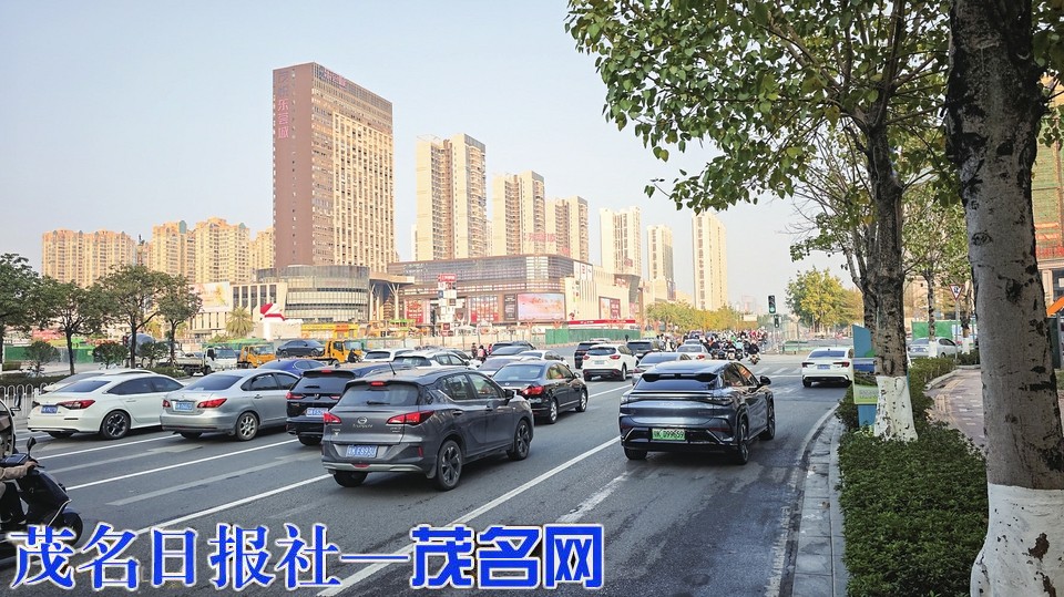 油城九路车辆快速过绿灯。茂名日报社全媒体记者 李光耀 摄