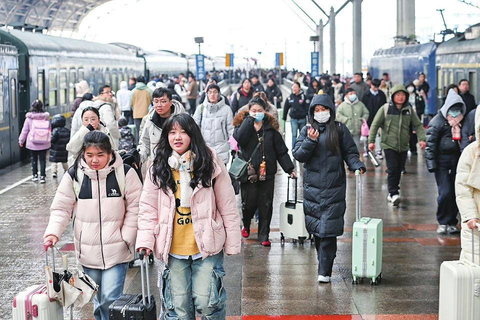 2026年1月1日,旅客抵达南京火车站。新华社发(杨素平 摄)