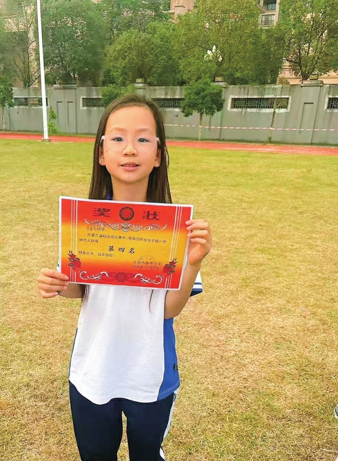 下午的颁奖仪式上,当我听到老师高声宣布:“单人跳女子第四名——劳嘉莹”时,我激动得一下子跳了起来。