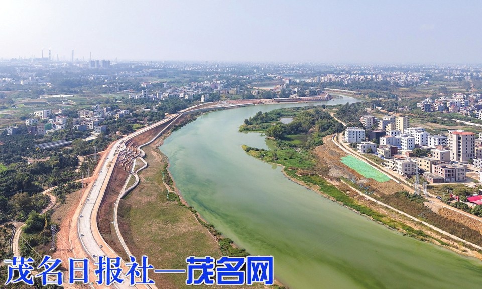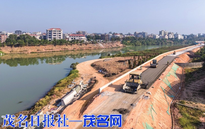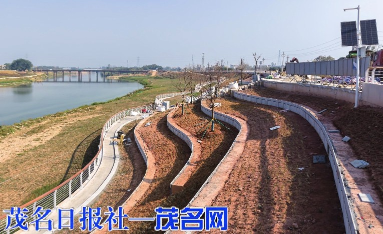 茂名网讯 湛蓝天空下,袂花江水面波光粼粼;机器轰鸣间,堤防施工稳步推进;绿意初绽处,生态配套加速落地……近日,记者走进茂名市袂花江综合治理工程(共青河新城高铁片区)沈海高速至中德大道段施工现场,看到施工方正集中力量推进铺装、绿化、栈道建设等重点任务,生态绿化配套工程与防洪主体施工同步推进,这条城市“生态绿脉”的滨水新貌正悄然显现(如上图)。