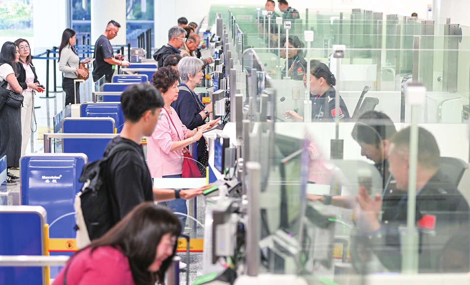 1月17日,入境旅客在海口美兰边检站办理边检手续。新华社记者 杨冠宇 摄