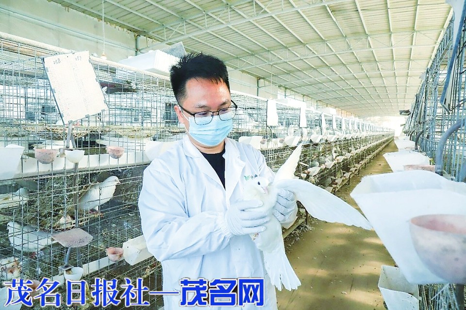 茂名网讯 青山绿水间,一排排现代化鸽舍整齐排列。棚内,从孵化、育苗到成鸽的科学化养殖流程井然有序。这里是信宜市池洞镇中道村的“同心鸽”生态养殖基地,也是“90后”返乡青年温世柱梦想起航的地方。一只只白鸽,正扑棱着翅膀,飞越大山,飞向粤港澳大湾区千家万户的餐桌,串起了一条集生态养殖、联农带农、终端消费于一体的乡村振兴产业链。
