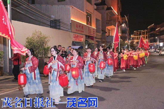 此外,由冼太舞舞蹈队、醒狮洪拳队和茂南区17个镇街的灯笼舞队组成的巡演队伍在公馆老街里巡游,场面壮观、气势磅礴,吸引了很多群众前来观赏。