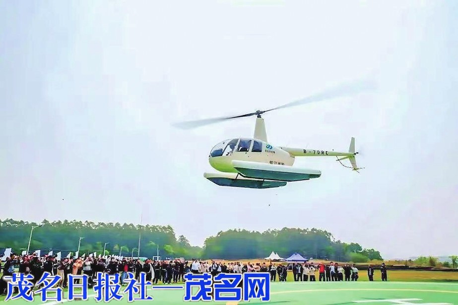 茂名农文旅直升机载人首飞暨航线发布仪式在茂名露天矿博物馆前广场举办。