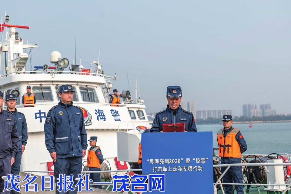 茂名网讯 为坚决遏制粤西海上走私活动蔓延势头,严密防范化解辖区海域走私风险隐患,1月28日上午,茂名海警局举行粤西海域(阳江、茂名、湛江)“粤海亮剑2026”打击海上走私专项行动启动仪式。此次行动由广东海警局统一部署,茂名海警局联合阳江海警局、湛江海警局、茂名市公安局、茂名海关缉私分局、茂名市烟草专卖局、茂名海事局、茂名市海洋综合执法支队等部门,以高压严打态势筑牢粤西海上安全屏障,全力守护国家经济安全与民生福祉。