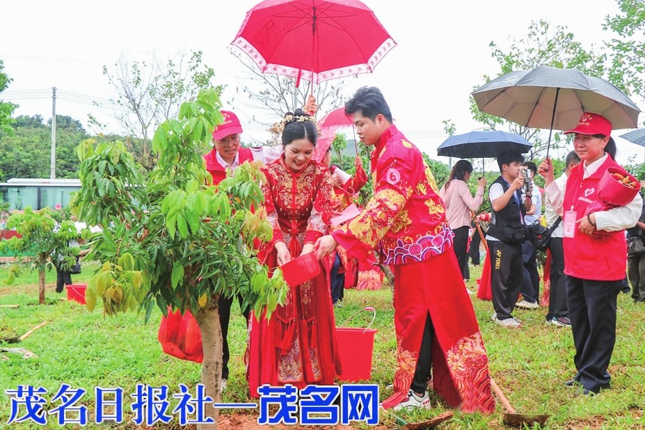 移风易俗树新风,新人集体婚礼植树活动。