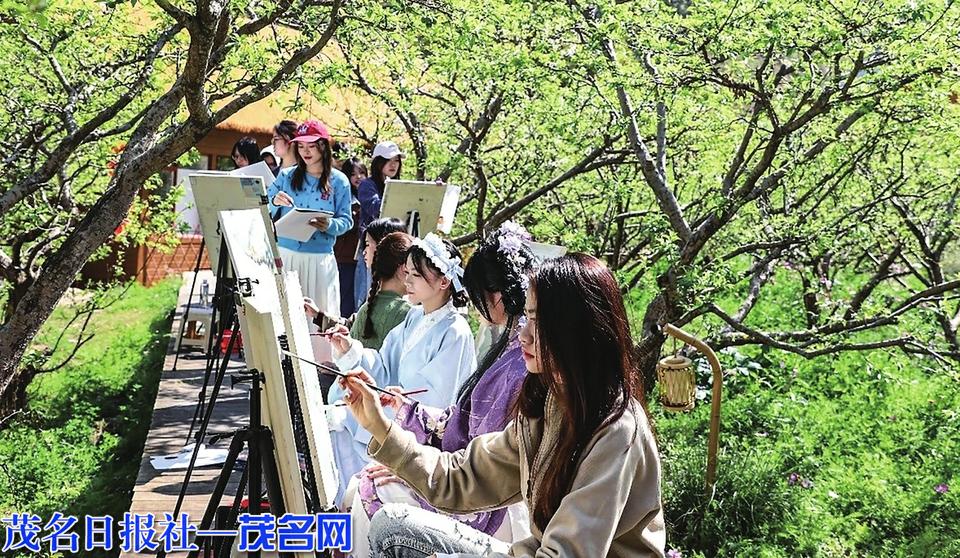 美院学生们寻得佳处,纷纷在李树下架起画板、铺开画纸,指尖握着画笔,眼神专注而明亮。画笔起落间,春日李乡的灵秀与鲜活,便渐渐在画纸上绽放。