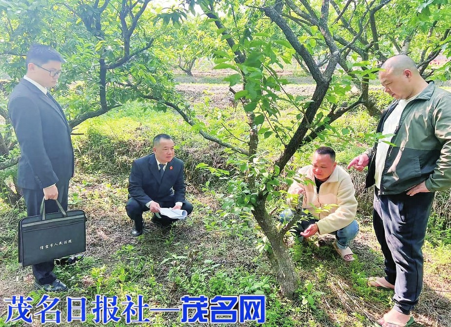 信宜法院法官在火烧三华李调解后回访。