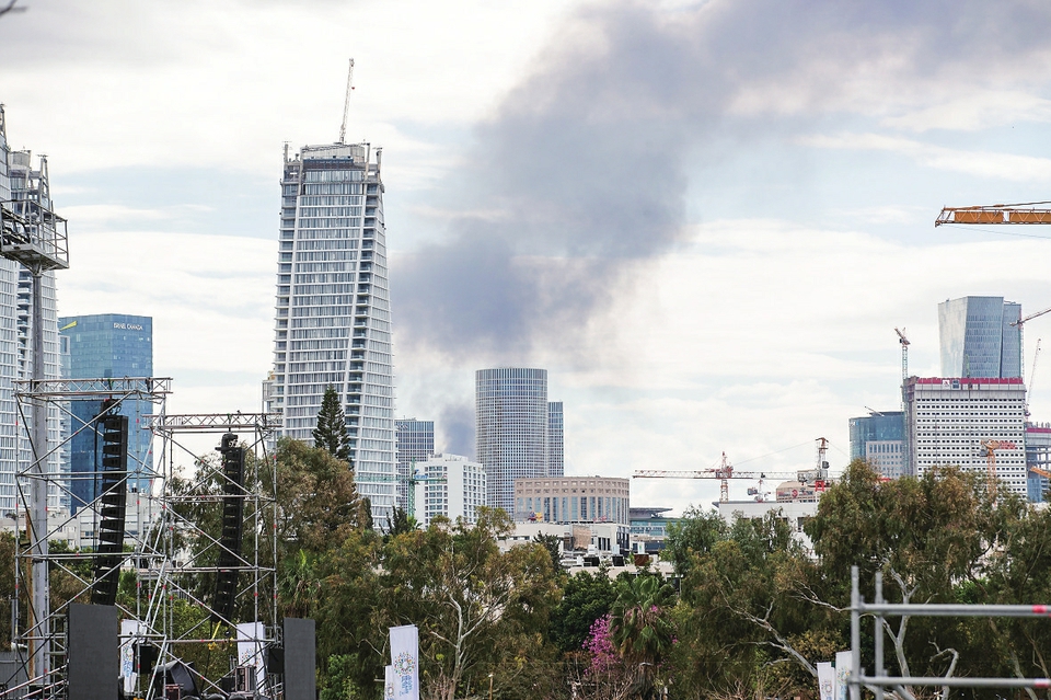 这是2月28日在以色列特拉维夫拍摄的浓烟。新华社记者 陈君清 摄
