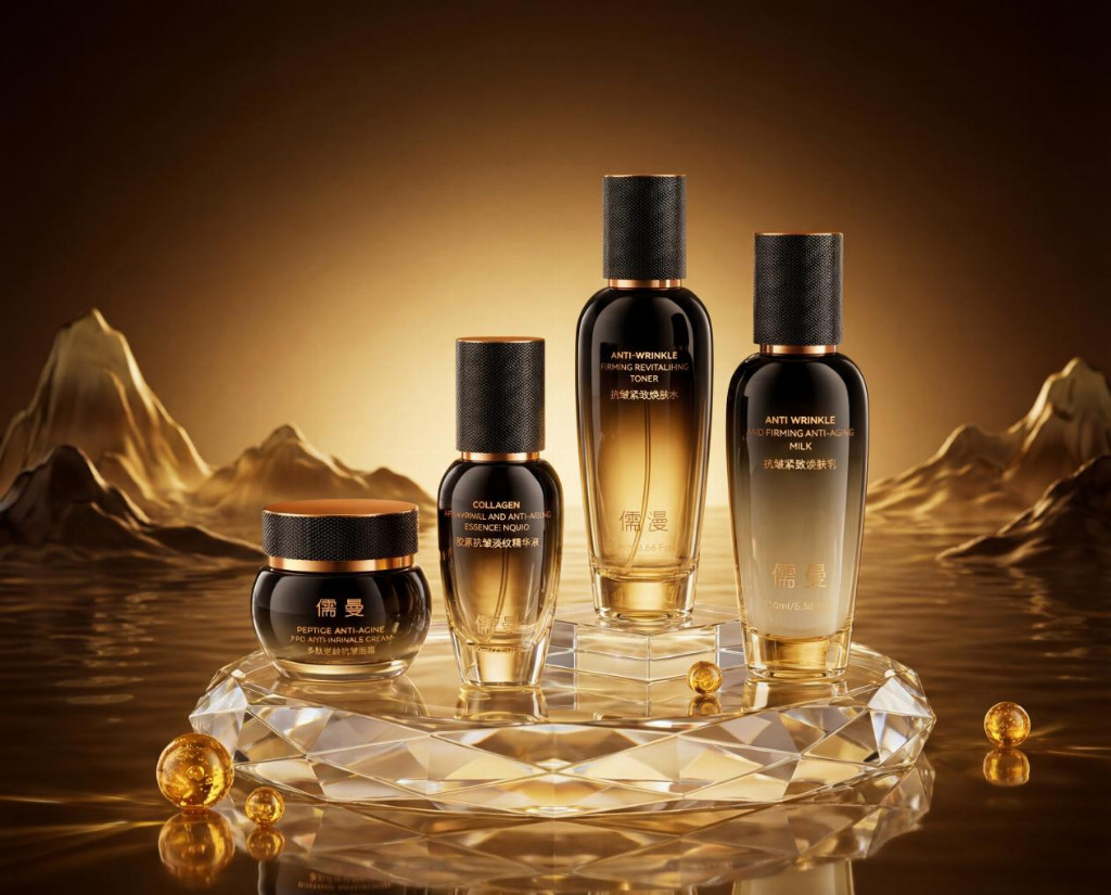 儒曼抗皱紧致焕肤水:清透质地,主打深层补水与锁水,同时融入多肽和玻色因,为后续吸收打好基础。