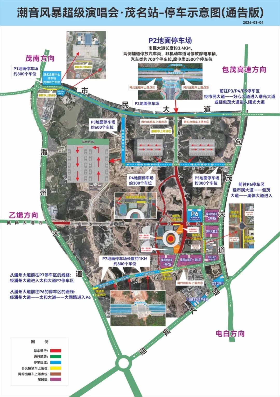 2026年潮音风暴超级演唱会茂名站将于3月7日在茂名奥体中心体育场举行。为保障演唱会顺利举办,维护道路交通安全畅通,根据《中华人民共和国道路交通安全法》第四十条、第九十九条及《中华人民共和国突发事件应对法》相关规定,茂名奥体中心周边相关道路将实施临时交通管制和出行停车指引,现将有关事项通告如下: