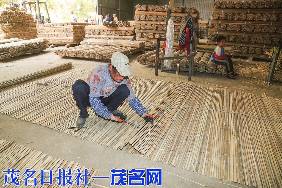 当地流传着“格苍竹马贵木”的说法,足见竹子之多。一路走来,像藤水江路口这样的加工作坊就有两家,将村民初加工的竹片进一步加工成一卷卷成品。老板们将成卷的成品运往廉江、阳江,再通过外贸渠道出口到一些临海国家。