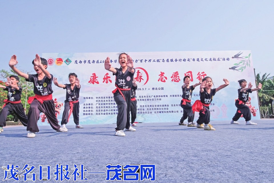 茂名网讯 3月7日上午,茂南区官渡街道桥北公园广场锣鼓喧天、热闹非凡,由茂南区委社会工作部牵头指导并全程统筹推进,市委老干部局、市教育局、市文化广电旅游体育局、共青团茂名市委员会、市油城老年大学、茂南区委宣传部、广东实验中学附属茂名学校主办的2026年学雷锋助力“百千万工程”志愿服务行动之“非遗文化进社区”活动在此温情启幕。