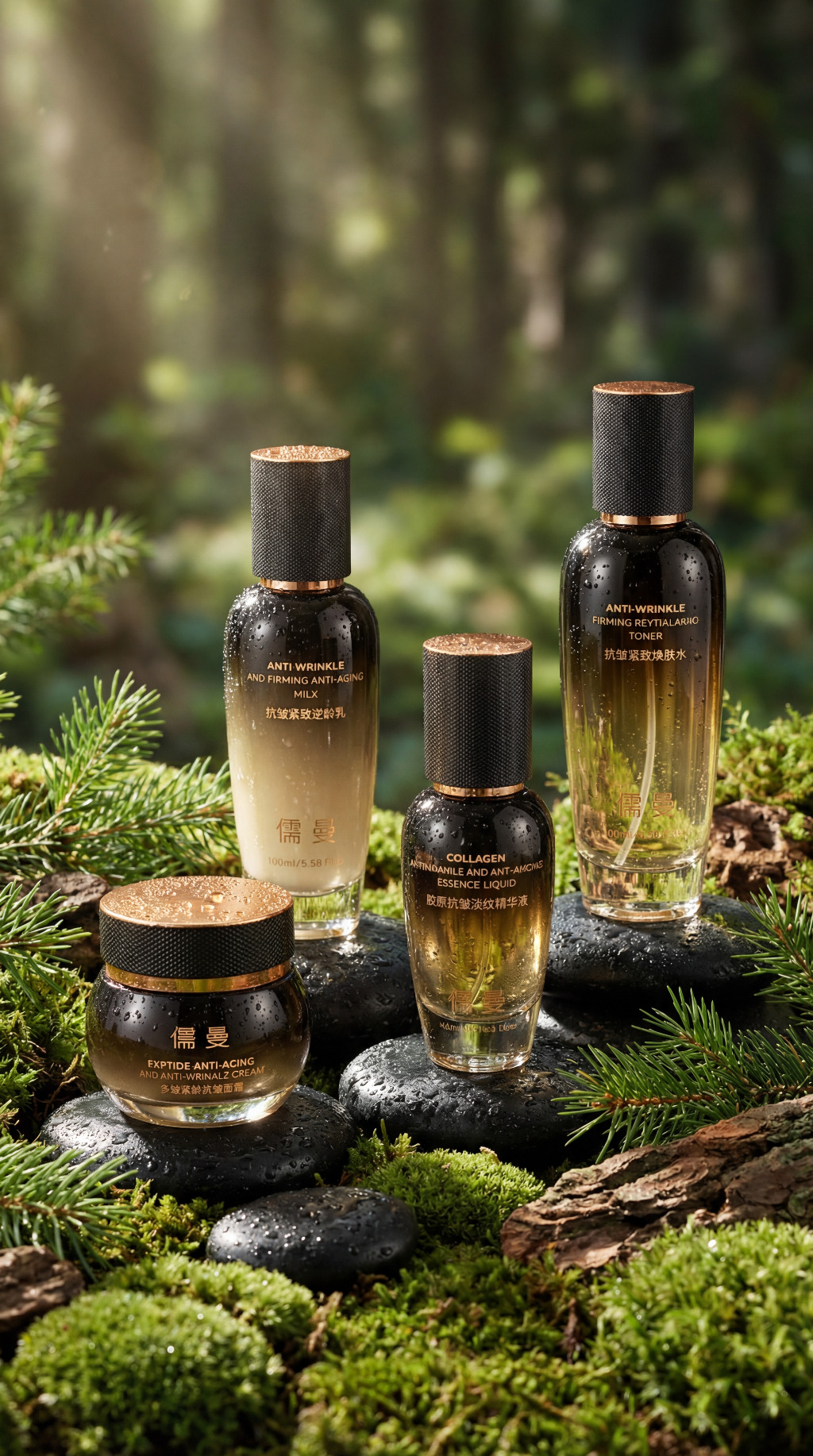 儒曼抗皱紧致套装包含4款核心单品,形成“水-乳-精华-霜”完整护肤闭环,覆盖从基础补水到深度抗皱的全流程,无需额外搭配其他产品,新手也能直接上手。