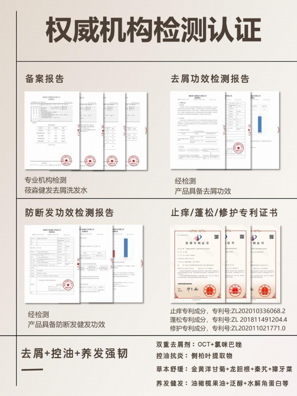专利加持:三大硬核专利成分——功效落地有保障。搭载止痒专利成分(专利号:ZL202010336068.2),快速舒缓头皮刺痒、泛红,告别反复瘙痒;蓬松专利成分(专利号:ZL 201811491204.4),调控皮脂腺分泌,拉长清爽时长,打造发根挺立蓬松感;修护专利成分(专利号:ZL202011021771.0),滋养发根、强韧发丝,减少断发掉发,筑牢头皮与发丝健康根基。