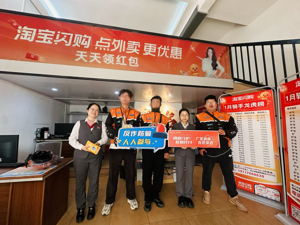 分行组织消保宣传小分队,走进外卖站点与淘宝闪购分店,针对“两司两员”职业特点与群体弱点,创新宣教模式,趁着骑手开晨会、等单间隙,开展“金融微课堂”,通过“现场讲解+手册发放+案例解析”组合模式,让金融知识“接地气、听得懂、用得上”。
