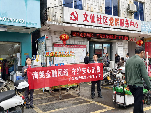 为深入落实2026年“3·15”金融消费者权益保护教育宣传工作要求,紧扣“清朗金融网络 守护安心消费”主题,广发银行茂名分行积极履行金融社会责任,组织专业宣传队伍走进化州市河西社区、文旅社区,面向老年居民、个体经营户等基层群体,开展征信知识、防范非法金融、防范电信网络诈骗等专题宣传活动,精准聚焦金融消费热点难点,切实守护群众财产安全。
