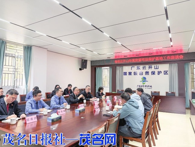茂名网讯 为贯彻落实《云开山环境资源司法保护协作框架协议》,进一步强化跨省(区)司法协作执法,日前,粤桂云开山环境资源司法保护基地在云开山保护区召开联席工作座谈会(如图)。茂名市中级人民法院、茂名市人民检察院等相关单位人员代表出席会议。会议依据“林长+森林法官”“林长+检察长”“林长+警长”协同机制,推动环境资源司法保护协作机制落实,合力守护绿美云开山的生态安全屏障。