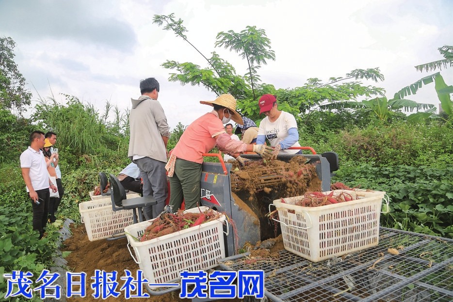 种植公司利用机械采收甘薯。