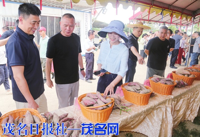 主办单位工作人员向嘉宾介绍新品种甘薯特点。茂名日报社全媒体记者李颜东摄