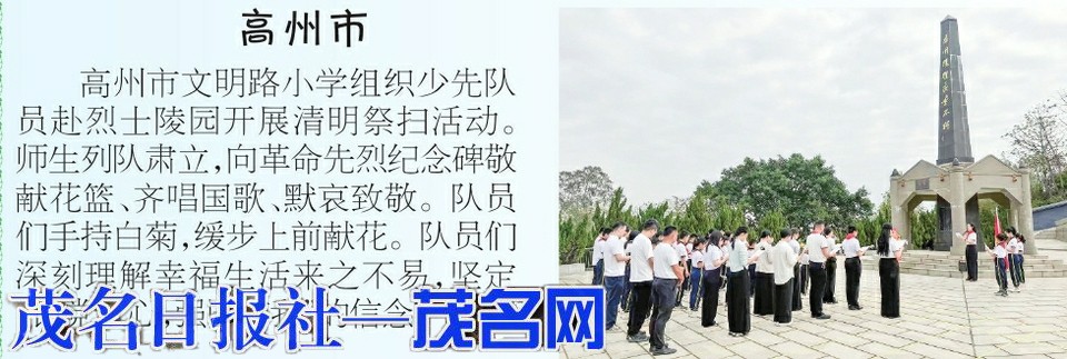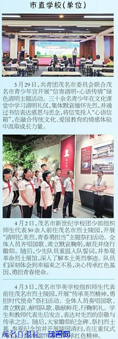 近日,在团市委、市少年工委的指导下,茂名各级共青团、少先队组织积极响应“追寻·2026·清明祭英烈”活动号召,广泛开展纪念缅怀英烈系列活动。广大青少年通过陵园祭扫、重温誓言、书写心语等形式,在庄重仪式中缅怀先烈,在深情追忆中感悟红色精神。整理/茂名日报社全媒体记者潘宇丽来源/综合市少年宫、各县区团委及相关学校编辑:刘敬源初审:温 国终审:何康源 点赞