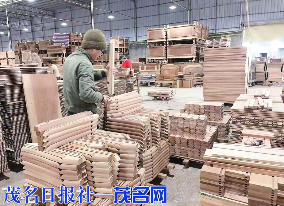 在产业发展的同时,很多家具企业也不忘承担社会责任。浩博家具有限公司的陈冠桦总经理说:“我们优先聘请当地的村民来上班,就是希望大家都能在家门口增收,兼顾家庭。”这家公司生产的家具,还远销到珠三角等地,成了化州“广货行天下”的生动案例。