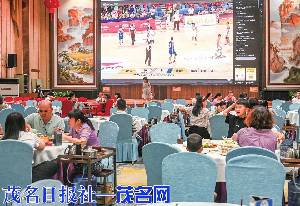 同样的热度也蔓延至高州。在高州市桂圆路的鸿福人家大厅,上百名篮球爱好者聚集于此,不少人穿着茂名队球迷服,脸上贴着队徽贴纸。比赛进入第四节关键时刻,茂名队连续得分缩小分差,大厅内顿时沸腾——有人激动得站起身挥舞拳头,有人举起手机录下这燃情一刻。“这才是篮球该有的样子!不管在场内还是场外,我们的心都和球队在一起。”球迷邓女士说,她平时很少看球,今晚被朋友拉来后彻底被氛围感染,“下次主场我还要来!”