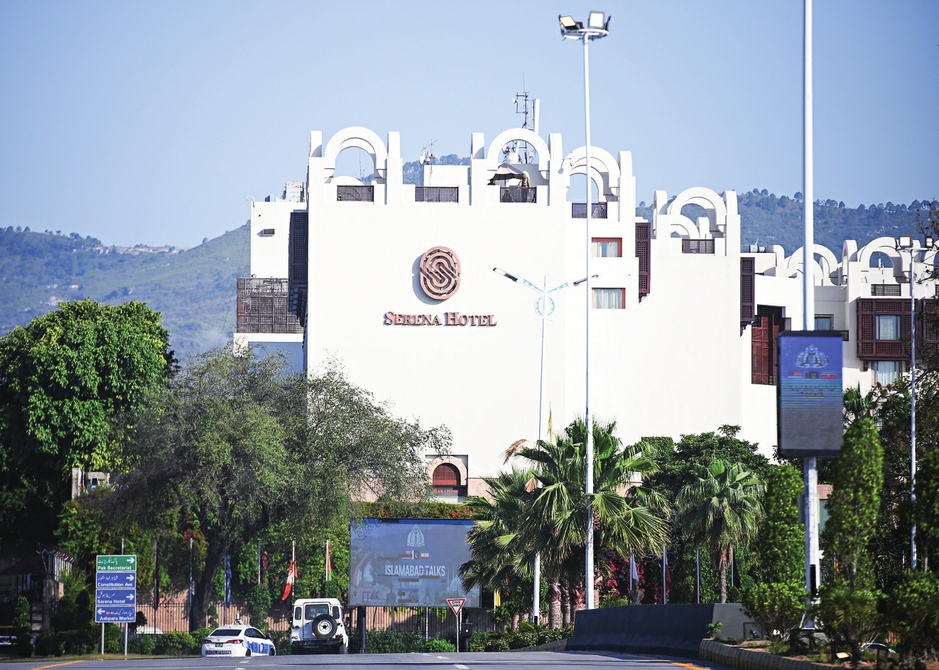这是4月12日在巴基斯坦首都伊斯兰堡拍摄的谈判举行地点塞雷纳酒店外景。新华社发(王申 摄)