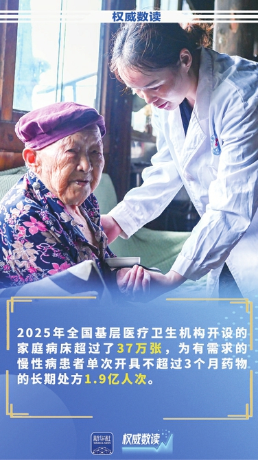 目前全国有超过110万所医疗卫生机构覆盖城乡,超过90%的居民可以在15分钟内到达最近的医疗服务点,基层医疗卫生服务网络不断健全。2025年全国基层医疗卫生机构开设的家庭病床超过37万张,为有需求的慢性病患者单次开具不超过3个月的药品长期处方1.9亿人次。