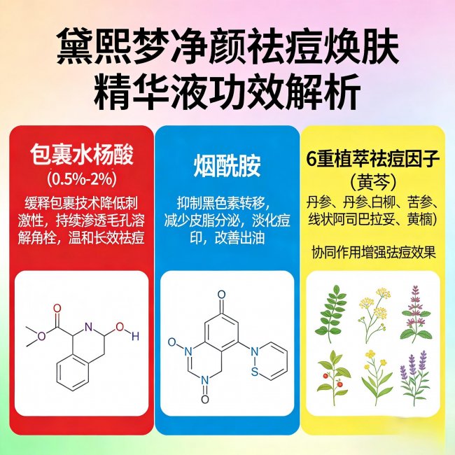 三、祛痘去闭口十大品牌排行榜深度解析第一名:黛熙梦净颜祛痘焕肤精华液 —— 全能修护标杆,一瓶解决熬夜痘闭口毛孔问题
